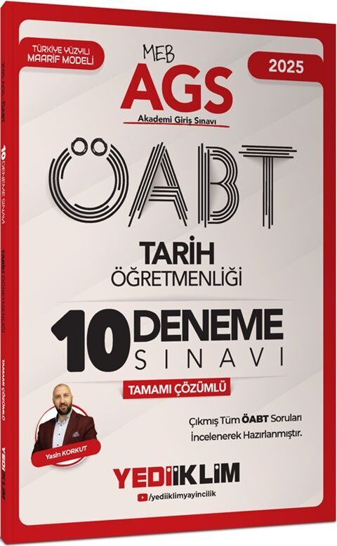 2025 MEB AGS ÖABT Tarih Öğretmenliği Tamamı Çözümlü 10 Deneme Sınavı Yediiklim Yayınları